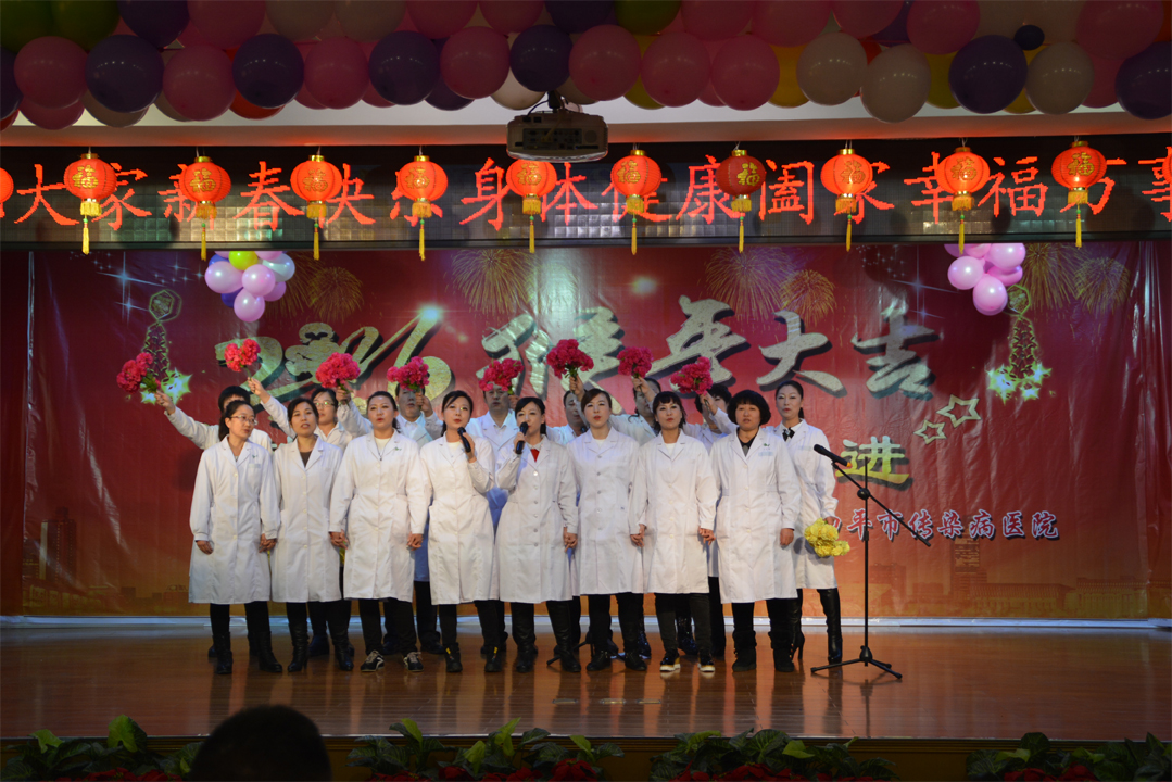 聯(lián)歡會在舞蹈《喜事多》中拉開序幕,小品《365個祝?!?、《新昨天、今天、明天》獲得大家的陣陣掌聲;詩朗誦《傳院頌》帶領(lǐng)大家回顧醫(yī)院創(chuàng)業(yè)創(chuàng)新的歷程;舞蹈《倍兒爽》、《大王讓我來巡山》展示了傳院職工的青春活力;游戲和抽獎環(huán)節(jié)更是讓聯(lián)歡會火爆升溫;舞蹈、小品、三句半、獨唱節(jié)目精彩紛呈,各具特色,在《T臺秀》和《今夜無眠》的祝福聲中,聯(lián)歡會落下帷幕。最后,所有參演人員與領(lǐng)導(dǎo)班子合影留念。此次活動為創(chuàng)建文明醫(yī)院,豐富職工生活,共度新春佳節(jié)增添了喜慶的色彩。