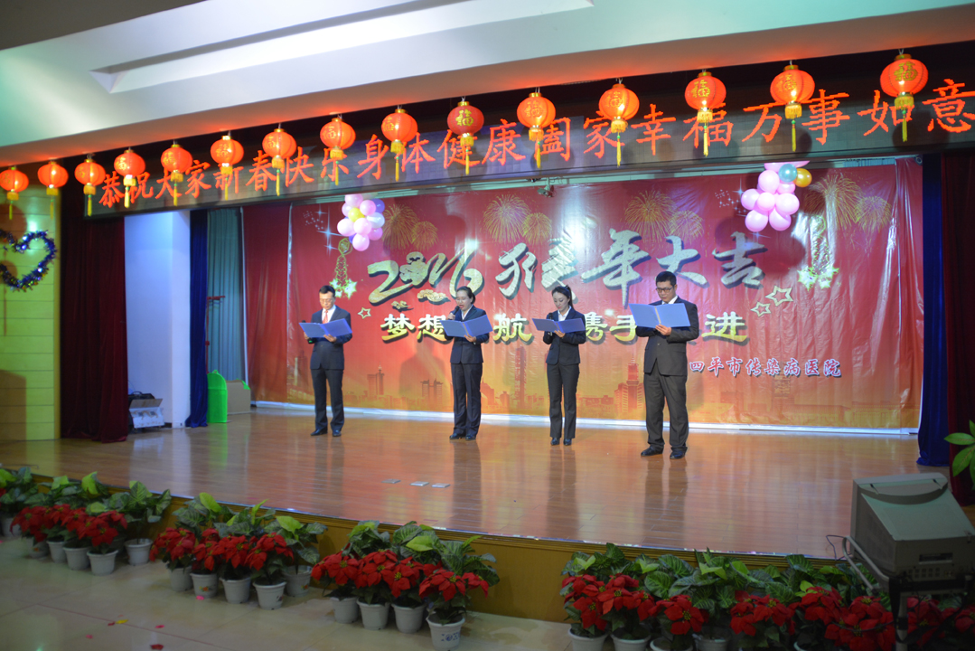 1月29日,“夢想起航 攜手共進”2016年新春聯(lián)歡會在醫(yī)院報告廳隆重舉行,黨委書記、院長周國彬同志代表醫(yī)院黨委做新春致辭,領(lǐng)導(dǎo)班子全體成員和全院職工同臺演出歡慶新春佳節(jié)。