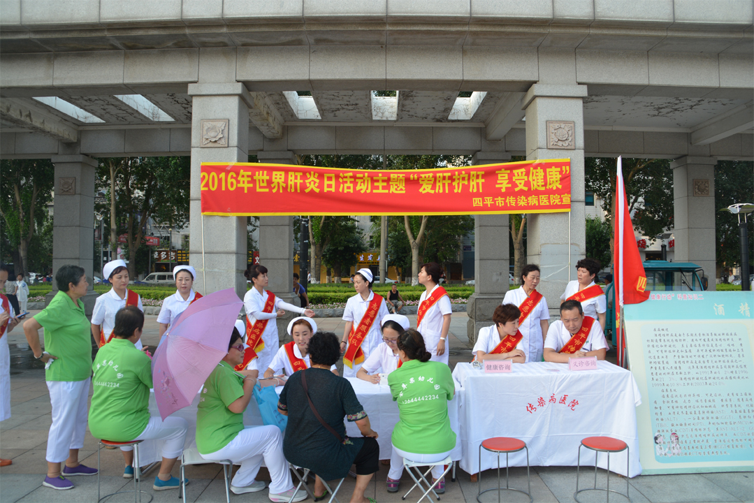 2016年7月28日是第六個(gè)世界肝炎日今年的活動(dòng)主題是:“愛肝護(hù)肝 享受健康”。為進(jìn)一步提升公眾對肝病的認(rèn)知,普及肝病防控知識,喚起公眾對肝炎防治工作的關(guān)注和重視,四平市傳染病醫(yī)院黨委組織志愿者服務(wù)隊(duì)、肝病專家團(tuán)隊(duì)一行三十余人,在市鐵西英雄廣場和鐵東廣場舉行為期三天的義診及健康體檢大型公益活動(dòng)?;顒?dòng)期間,傳染病醫(yī)院專家現(xiàn)場義診、健康咨詢,并發(fā)放了醫(yī)院健康體檢卡和紀(jì)念品千余份,受到廣場休閑民眾們的極大歡迎。