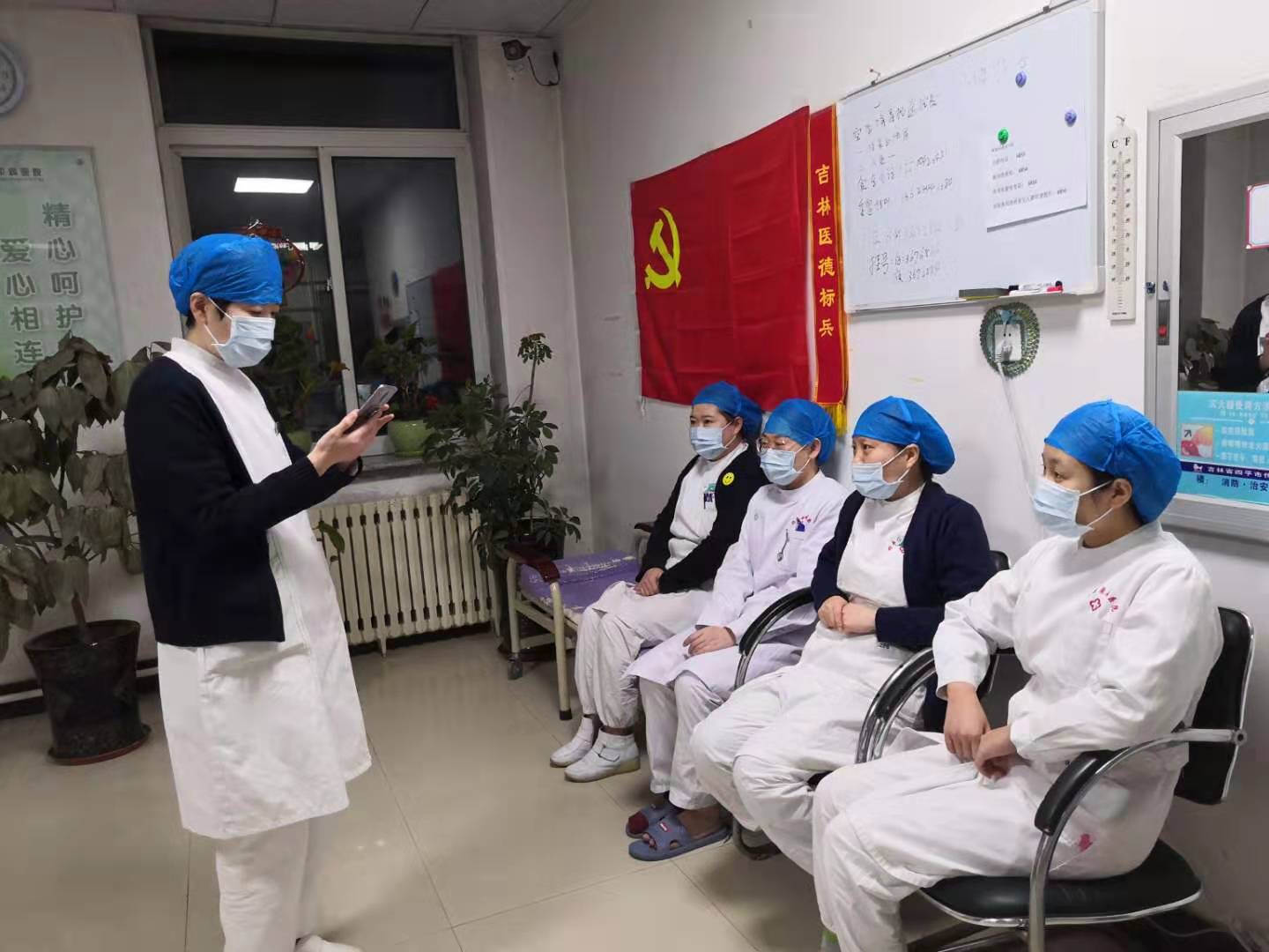 工作中,她甘于奉獻,樂于助人,在重大疫情面前,從不退縮,2003年非典肆虐,她是年齡最小的第一梯隊隊員,2008年手足口流行期間,她是第一批健康守衛(wèi)者,2009年擔任應急病房總務護士,參與禽流感的防治,2020年在新冠疫情突襲,作為臨床支部書記主動寫下請戰(zhàn)書,在1月31日進入隔離病房,始終以共產黨員的標準要求自己,在工作中,她既要嚴抓護理管理和院感防控,還要組織和帶動臨床支部的黨員同志們在抗擊疫情中發(fā)揮先鋒模范作用,切實起到戰(zhàn)斗堡壘作用。個人更是率先垂范,無私奉獻,在疫情防控的最關鍵時期,醫(yī)院開放所有病房,護理人員嚴重不足,她主動向劉麗院長請求在隔離病房再堅持工作一周,創(chuàng)造了連續(xù)工作14天的記錄,在疫情防控的第一線,每個人像一只擰緊發(fā)條的陀螺,白天出外勤、靜脈穿刺、采集標本、心理疏導,而她夜里還要梳理黨務工作,特別是接到火線發(fā)展黨員的任務后,堅持利用休息時間,及時把幾位入黨積極分子的材料整理完畢,使這五位同志順利地履行了組織程序, 2月9日完成新黨員入黨宣誓工作,面對鮮紅的黨旗,大家莊嚴宣誓,并用自己的實際行動踐行這一使命,疫情無情,人有情,新冠肆虐,梯隊成員更加團結友愛,互相幫助,互相關心,緊密團結在院黨委周圍,一切行動聽指揮。面對防護用品緊缺的實際情況,一方面嚴格防護用品管理,一方面盡量親自出外勤,并盡量延長外勤時間,在共抗疫情期間,全力以赴,共三次進入隔離病房,與隊友們較好的完成領導交給的保衛(wèi)四平人民生命健康的任務。